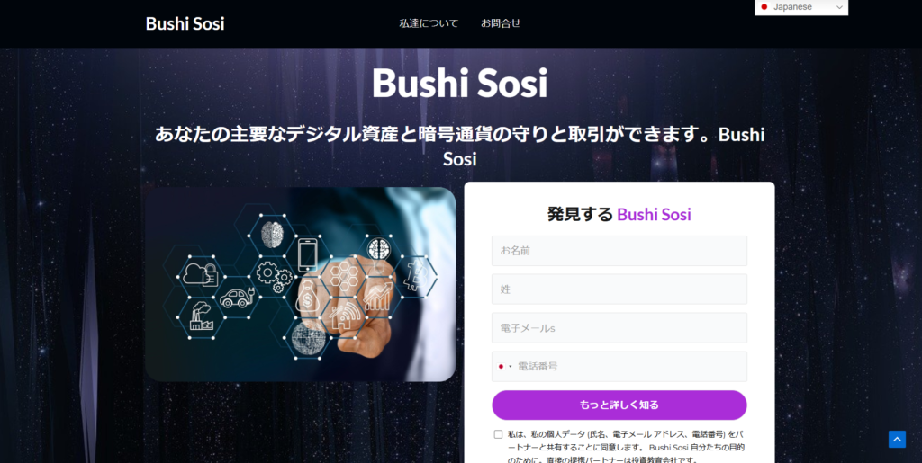「BUSHI SOSI」とは、主に仮想通貨の取引を行うプラットフォームを提供していると主張するウェブサイトです。公式サイトでは、さまざまな仮想通貨に関する情報を提供し、利用者に向けて簡単に取引ができる環境を整えていると説明されています。投資家を魅了するため、特に「高収益」「即時の利益獲得」を強調し、見込み客に多額の投資を促していることが特徴です。