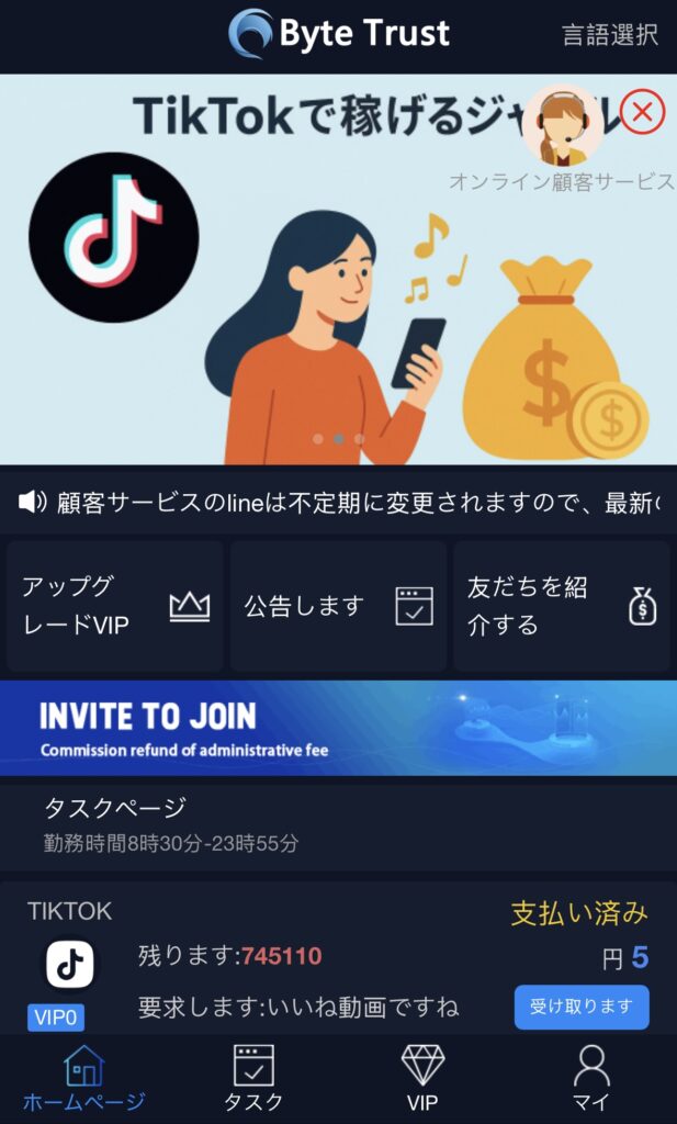 ByteTrust(偽)は、「誰でも簡単にECサイト運営ができる」「毎月安定的に利益が出せる」などと謳い、LINEやInstagramを通じて勧誘を行っている業者です。典型的なビジネスモデルは以下の通りです。